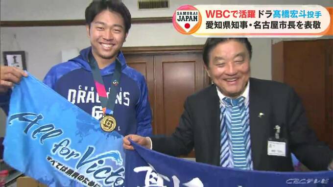 WBC=ワールド・ベースボール・クラシックで活躍した、ドラゴンズの髙橋宏斗投手が名古屋市の河村市長と愛知県の大村知事を訪れ、優勝を報告しました。28日午後、名古屋市の河村市長を表敬訪問したドラゴンズの髙…