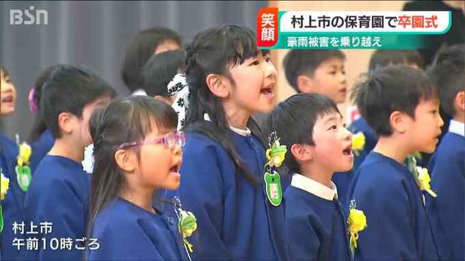 去年8月の豪雨で大きな被害を受け、現在も『分散保育』を続ける村上市の保育園で卒園式が行われました。