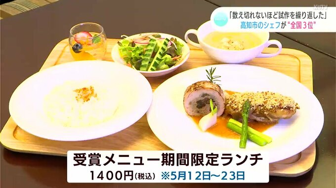 高知市のシェフが先月行われた料理コンテストで全国3位に輝きました。『数えきれないほど試作を繰り返した』と言う渾身の受賞メニューが期間限定で提供される予定です。