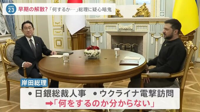 それでも早期解散が語られるのは、日銀総裁のサプライズ人事やウクライナ電撃訪問などによって、総理が何をするのかわからない、という疑心暗鬼が生まれているからです。