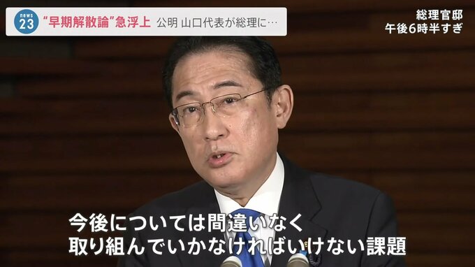 “早期の解散論”急浮上 公明党・山口代表は総理に「解散じゃ…」