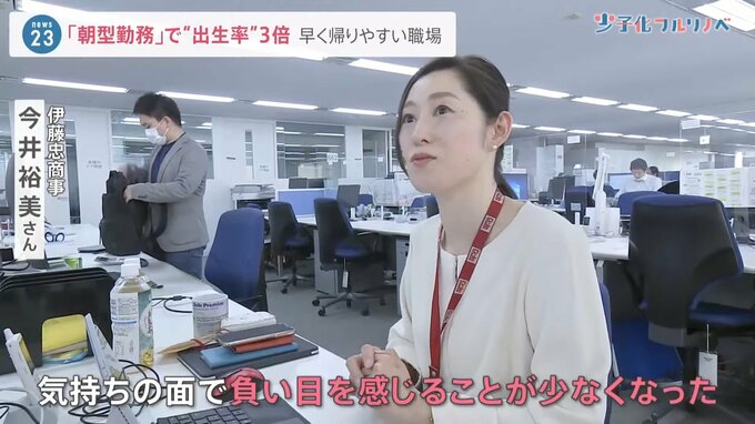 「朝早く来て効率的に働いて早く帰る。そういった働き方が、何ら特別なものではないというふうに周りの雰囲気が変わってきたので、気持ちの面で負い目を感じることが少なくなった」