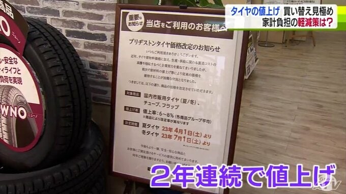 春らしい日が続いて夏用タイヤへの交換もピークとなっていますが、そのタイヤが去年に引き続いてまた値上げとなります。夏用タイヤは4月1日から、冬用タイヤはこの夏にも。家計の負担を少しでも減らすためには?タイヤ専門店を取材しました。