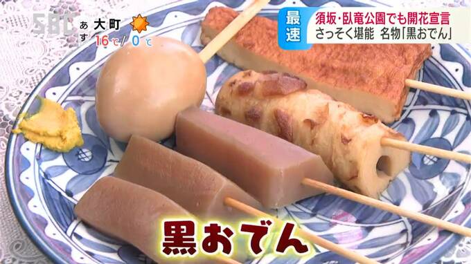 臥竜公園の名物といえば、濃い茶色が食欲をそそる黒おでん。