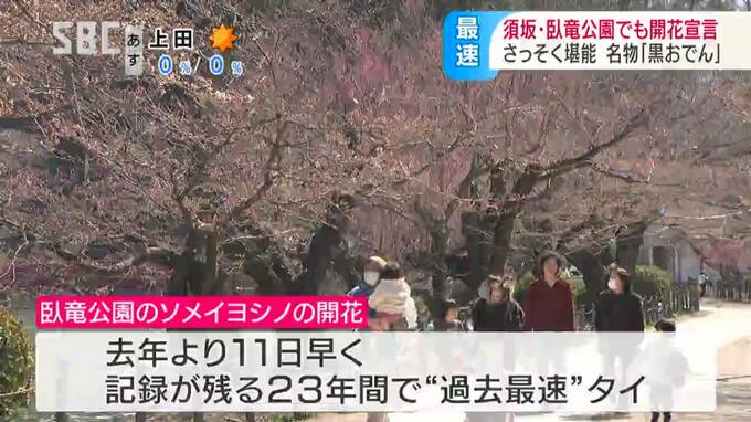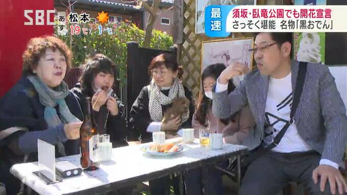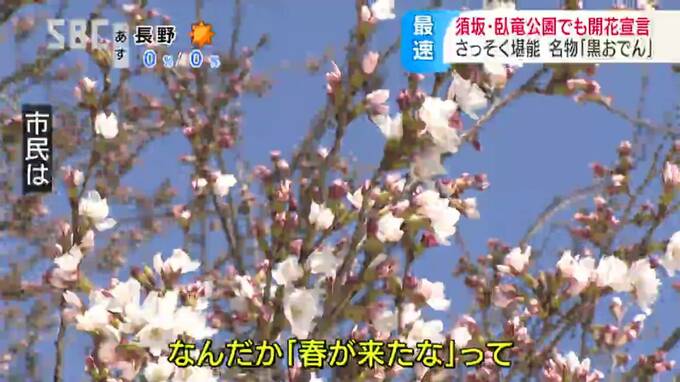 桜が開花した須坂市の臥竜(がりゅう)公園では一足早いお花見を楽しむ人もいました。