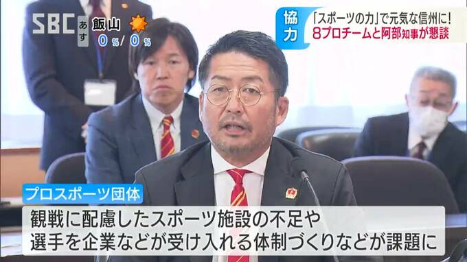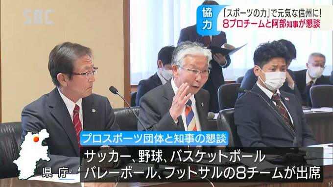 「スポーツを通じた元気な県づくり」を進めようと、長野県内の8つのプロスポーツ団体と阿部知事が初めて懇談しました。