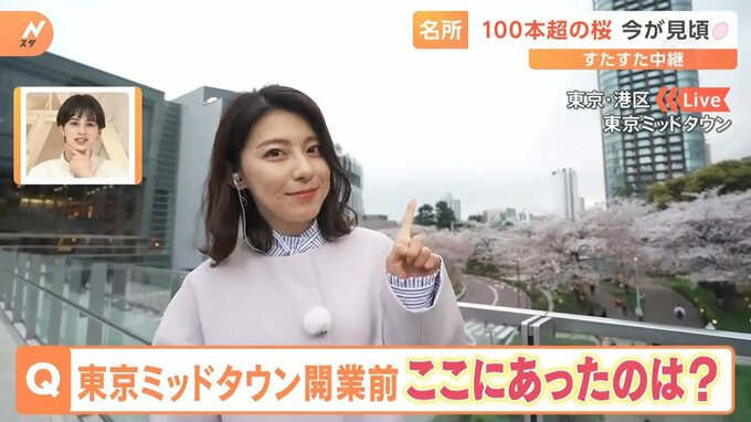 日本や海外を含め「いま話題の現場」からお伝えする「歩いて発見!すたすた中継」。東京・六本木の東京ミッドタウンでは、寒さ対策もバッチリで夜桜を楽しめるイベントが開催されています。