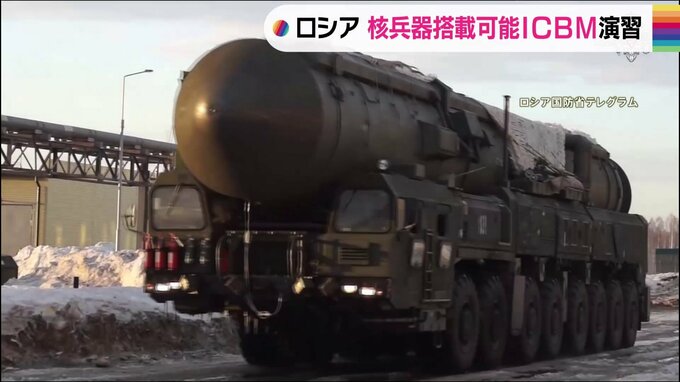 ロシア軍は核兵器を搭載可能なICBM=大陸間弾道ミサイルの訓練を含めた軍事演習を始めました。ロシア国防省は29日、戦略ミサイル部隊がシベリアでICBM「ヤルス」の運用訓練を含めた軍事演習を開始したと発表しまし…