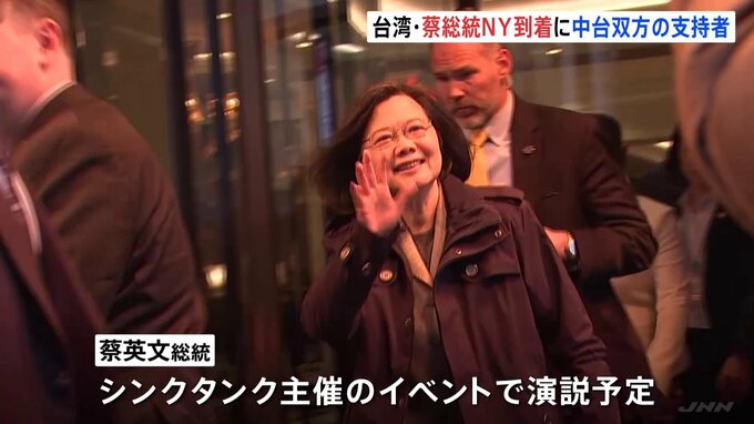 台湾の蔡英文総統が中米歴訪のため経由地のアメリカ・ニューヨークに到着、滞在先の前には台湾と中国の支持者ら数百人が集まりました。記者「蔡英文総統の宿泊先の前には、中国旗を掲げた多くの人がいます」蔡総統…
