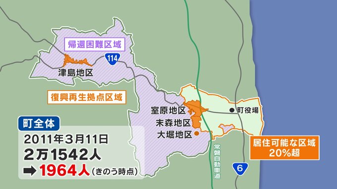 この復興拠点は、町の面積のおよそ3%で、これで町内で居住可能な区域は20%を超えました。一方、いまだ町の80%は帰還困難区域となっています。