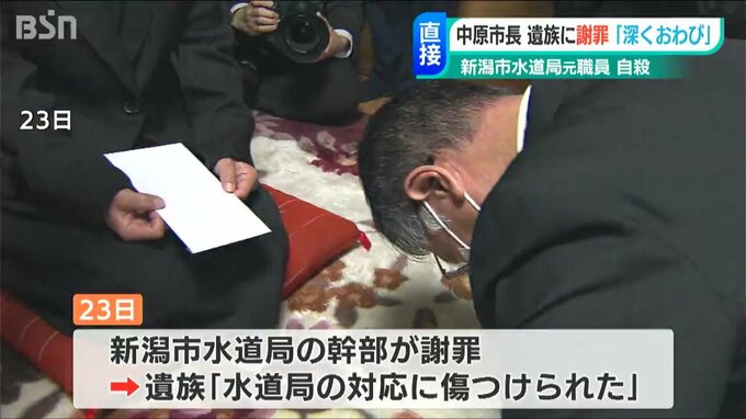 3月23日には、新潟市水道局の幹部が初めて遺族のもとを訪れて謝罪しましたが、遺族はそのときの水道局の対応にも傷つけられたと話し、水道局の真摯な反省を求め、当時の上司による謝罪がいまだにないことから謝罪を求めていました。