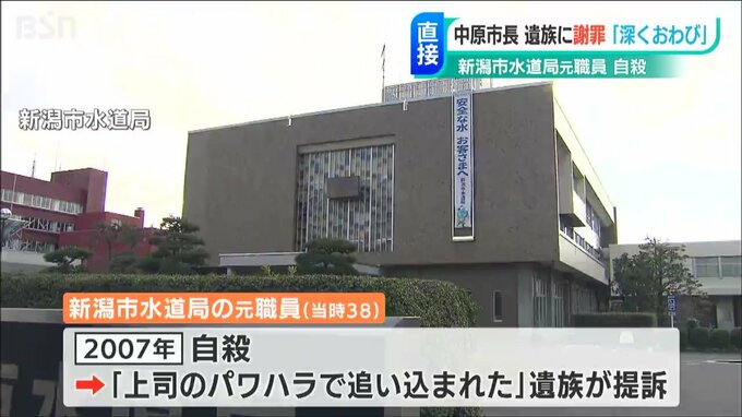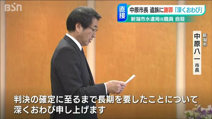 2007年に新潟市水道局の元職員が自殺し、新潟地裁が新潟市に対して賠償を命じた件で、30日に新潟市の中原八一市長が直接謝罪をしました。