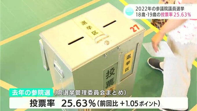 去年7月に行われた参議院議員選挙の18歳・19歳の投票率は4年前の参院選に比べて1%ほど上回ったものの、依然として低い状況が続いていることが分かりました。県選挙管理委員会によりますと、去年の参院選における18…