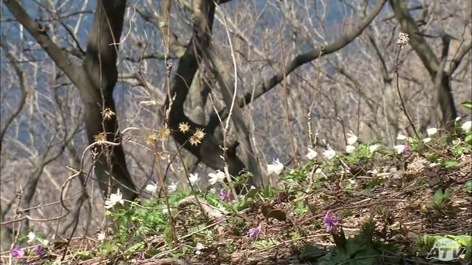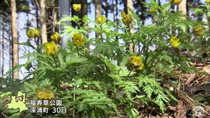 青森県深浦町では雪どけと共に花を咲かせて春の訪れを告げるフクジュソウが見ごろを迎えています。