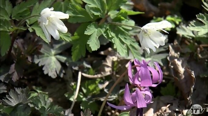 また公園には白い花のキクザキイチリンソウや紫の花のカタクリも花を咲かせて春の訪れを告げています。深浦町の福寿草公園では5月中旬まで春限定の草花を楽しむことができます。
