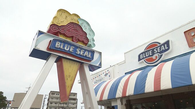 今野リポーター「大きなアイスクリームの看板が目印の牧港本店は、今日で営業が一時的に最後ということで、平日のお昼時にも関わらず多くの方が訪れています」
