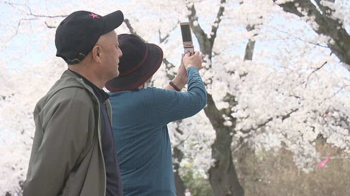 福島市から来た60代男性「木が覆い被さっていて、空全体にサクラが咲いている感じで本当にキレイですね。」