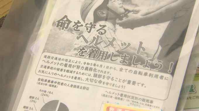 福岡県警交通企画課・徳野史倫管理官「警察としては、ヘルメットの被害軽減について具体的に説明しながら、県民にしっかりと着用を呼びかけていきたい。学校での交通安全教室や地域の会合などのあらゆる機会を通じて正しいかぶり方を具体的に啓発していきたいと思う」
