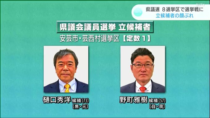 定数1の安芸市・芸西村選挙区は無所属の元議員と自民党の現職の一騎打ちが確定しました。