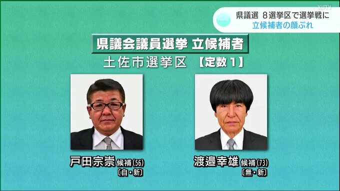 定数1の土佐市選挙区です。自民党の新人と無所属の新人による一騎打ちの選挙戦が確定しました。