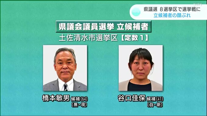 定数1の土佐清水市選挙区、無所属の現職と自民党の新人による一騎打ちの選挙戦となりました。