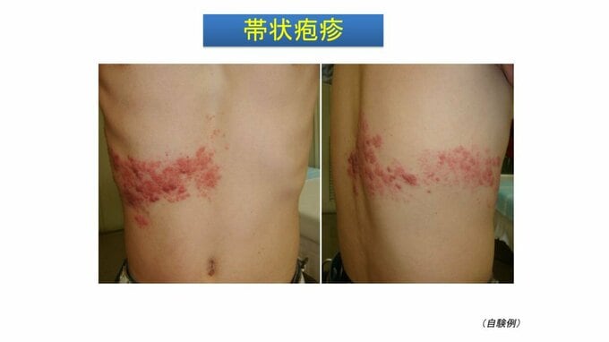 多くの場合、皮膚症状が治ると痛みも消えますが、このウイルスは神経に沿って広がり、神経を傷つけますので、後遺症として痛みが残ることもあります。これは『帯状疱疹後神経痛』呼ばれる最も頻度の高い合併症です」