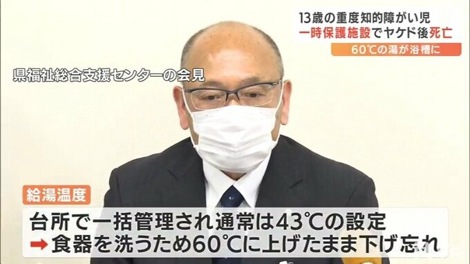 そして入所から5日後の22日夜の入浴時、職員が着替えなどの準備で7分ほど浴室を離れ、戻ると熱湯に両足を浸けた状態の子どもを発見。