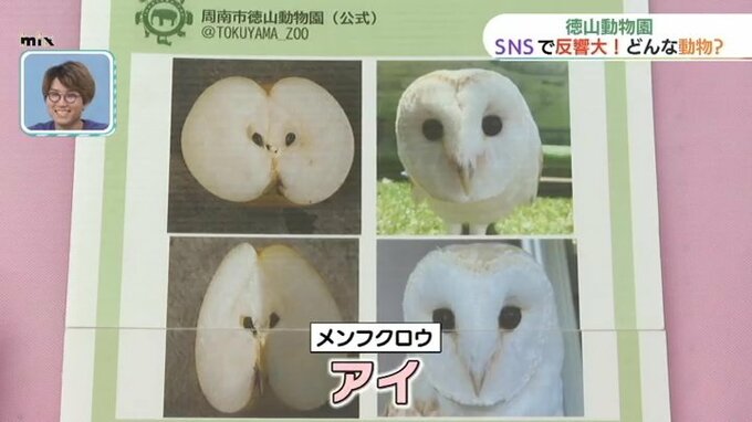 また、特に反響が大きかったのは、メンフクロウのアイ。顔つきがナシの断面に似ています。