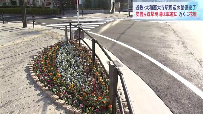 去年、安倍元総理が銃撃され死亡した事件で現場となった奈良市の近鉄・大和西大寺駅周辺での整備事業が完了しました。銃撃現場は車道となり、近くの歩道には花壇が設けられました。「亡くなられた方に対する思いも…