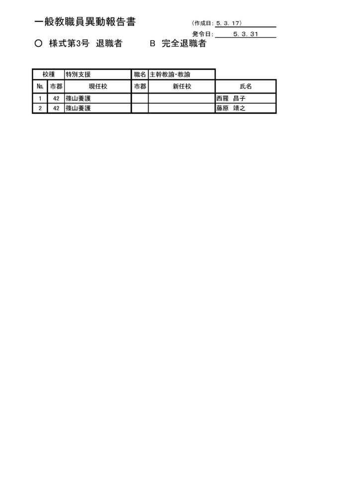 兵庫県教職員人事異動2023「あの先生はどこへ?」中学校・県立高校・特別支援学校の異動【全件掲載】 毎日放送 2023年4月2日(日) 06:00 国内 あの先生へどこへ?【丹波地区の特別支援学校】 丹波地区の特別支援学校の人事異動 丹波地区の特別支援学校の人事異動 丹波地区の特別支援学校の人事異動 丹波地区の特別支援学校の人事異動 丹波地区の特別支援学校の人事異動
