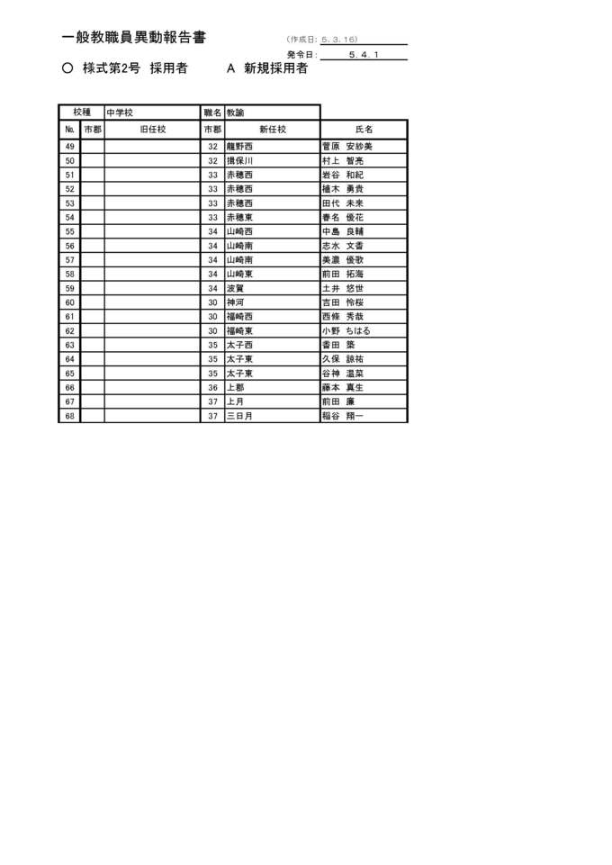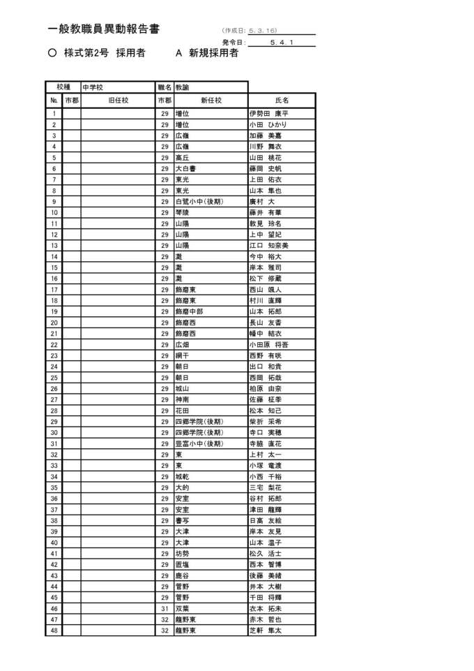 兵庫県教職員人事異動2023「あの先生はどこへ?」中学校・県立高校・特別支援学校の異動【全件掲載】 毎日放送 2023年4月2日(日) 06:00 国内 あの先生はどこへ?【播磨西地区の中学校】 播磨西地区の中学校の人事異動 播磨西地区の中学校の人事異動 播磨西地区の中学校の人事異動 播磨西地区の中学校の人事異動 播磨西地区の中学校の人事異動 播磨西地区の中学校の人事異動 播磨西地区の中学校の人事異動 播磨西地区の中学校の人事異動 播磨西地区の中学校の人事異動 播磨西地区の中学校の人事異動 播磨西地区の中学校の人事異動 播磨西地区の中学校の人事異動 播磨西地区の中学校の人事異動 播磨西地区の中学校の人事異動 播磨西地区の中学校の人事異動 播磨西地区の中学校の人事異動