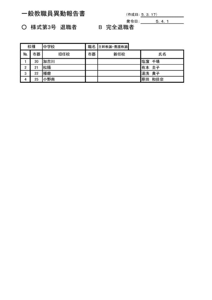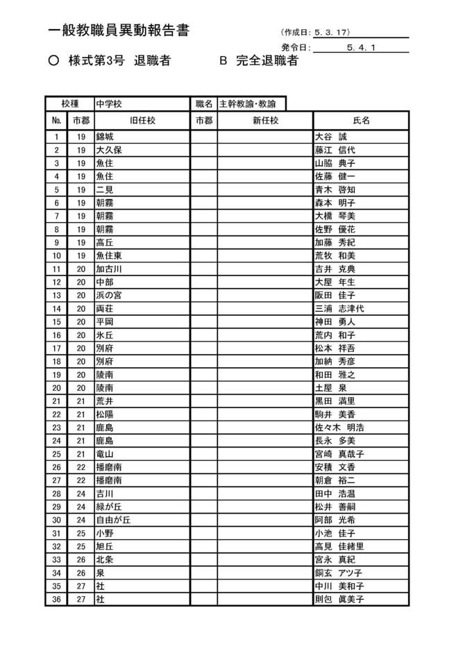 兵庫県教職員人事異動2023「あの先生はどこへ?」中学校・県立高校・特別支援学校の異動【全件掲載】 毎日放送 2023年4月2日(日) 06:00 国内 あの先生へどこへ?【播磨東地区の中学校】 播磨東地区の中学校の人事異動 播磨東地区の中学校の人事異動 播磨東地区の中学校の人事異動 播磨東地区の中学校の人事異動 播磨東地区の中学校の人事異動 播磨東地区の中学校の人事異動 播磨東地区の中学校の人事異動 播磨東地区の中学校の人事異動 播磨東地区の中学校の人事異動 播磨東地区の中学校の人事異動 播磨東地区の中学校の人事異動 播磨東地区の中学校の人事異動 播磨東地区の中学校の人事異動 播磨東地区の中学校の人事異動 播磨東地区の中学校の人事異動 播磨東地区の中学校の人事異動 播磨東地区の中学校の人事異動 播磨東地区の中学校の人事異動 播磨東地区の中学校の人事異動