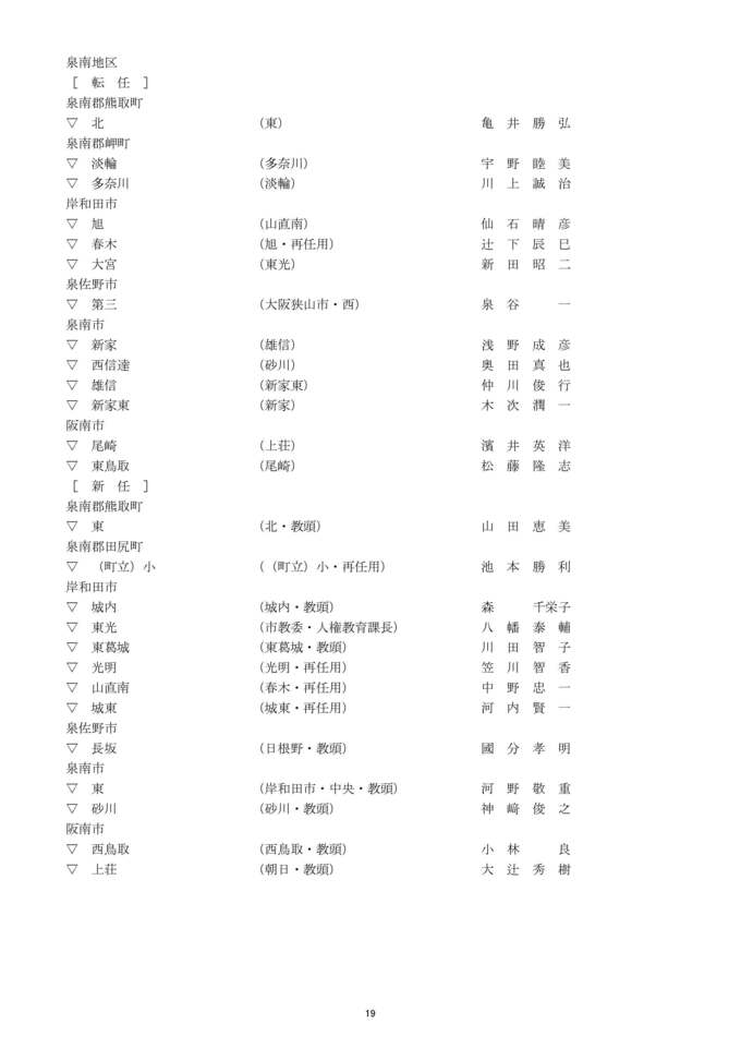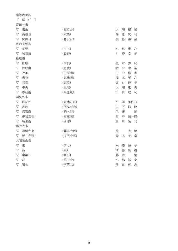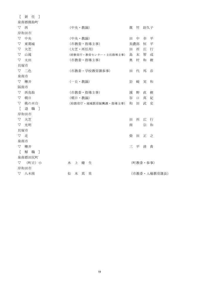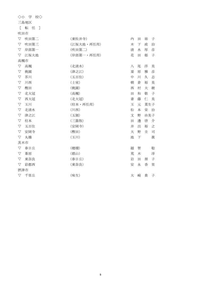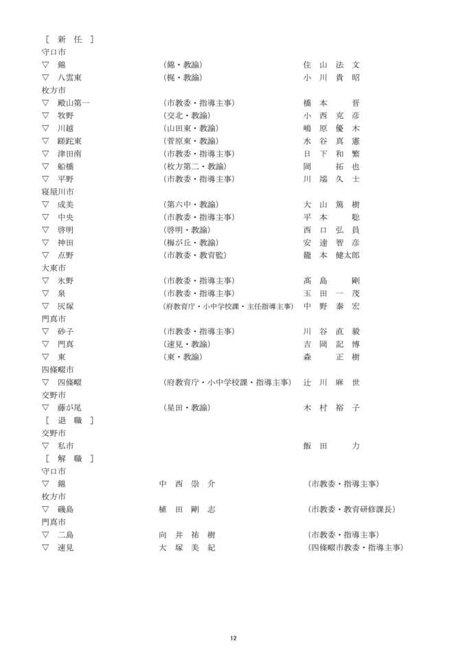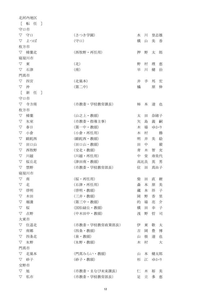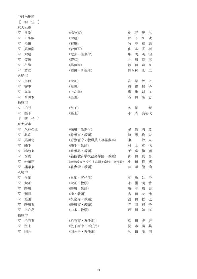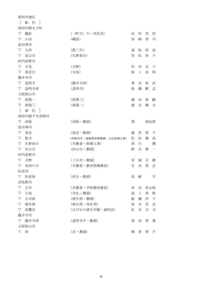 大阪府教職員人事異動2023「あの校長先生・教頭先生はどこへ?」小学校・中学校・府立高校など【全件掲載】 毎日放送 2023年4月2日(日) 12:06 国内 大阪府教育庁は4月1日付の公立学校教職員の人事異動を発表しました。異動は4月1日付です。 今回の異動対象の人数は8150人で、学校別では小学校で3100人、中学校で1942人、府立高校で2081人などとなっています。 また、校長や教頭など管理職に新たに女性が103人登用されたということです。また、在職者数は去年度と比べて、6人増加して、478人になったということです。 ▼中学校 ▼府立高校 ▼義務教育学校 ▼特別支援学校 ▼あの校長先生・教頭先生はどこへ?【小学校】 【校長】 小学校校長の人事異動 小学校校長の人事異動 小学校校長の人事異動 【教頭】