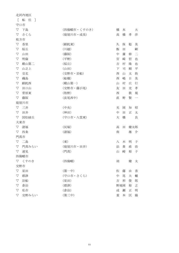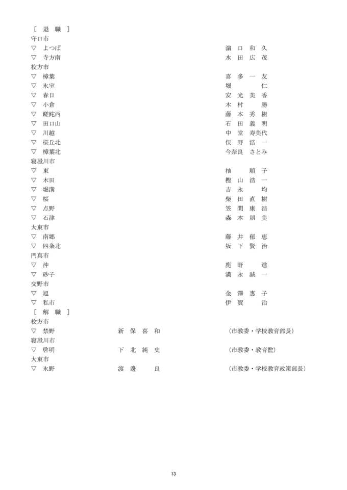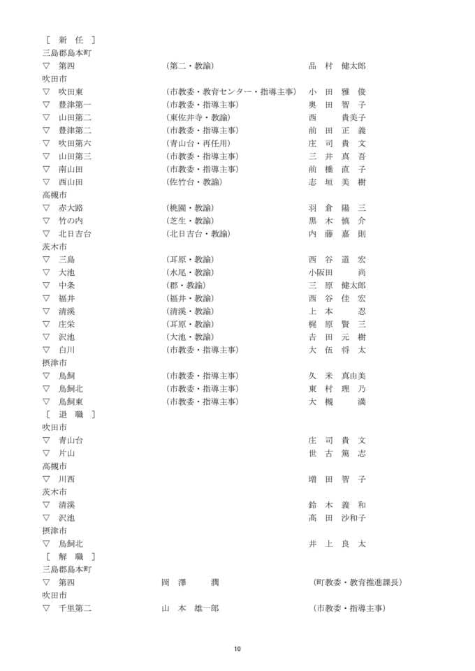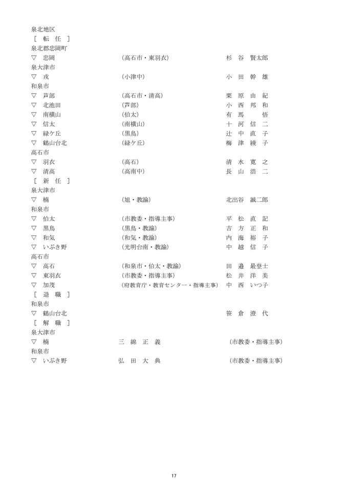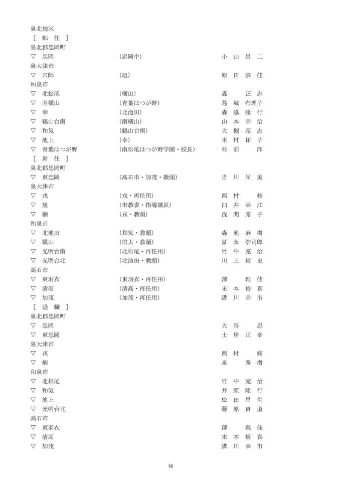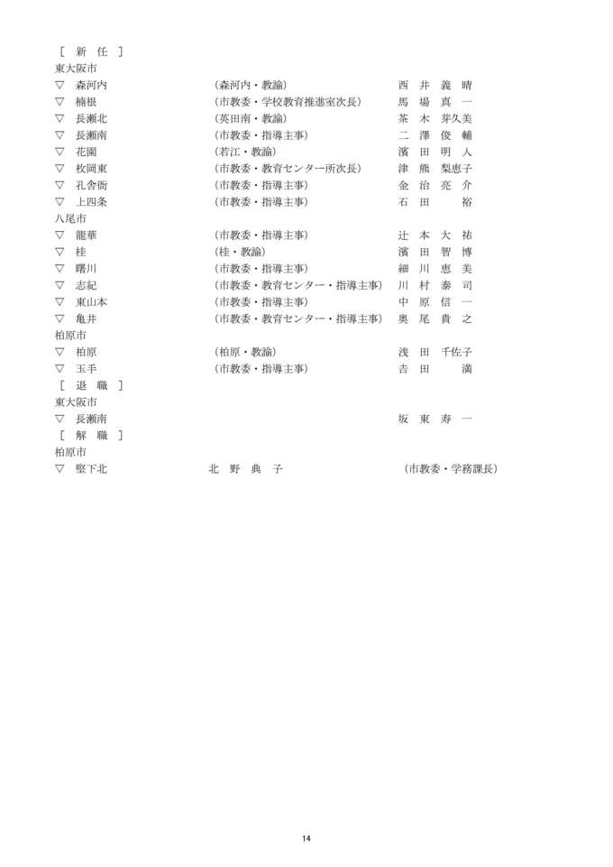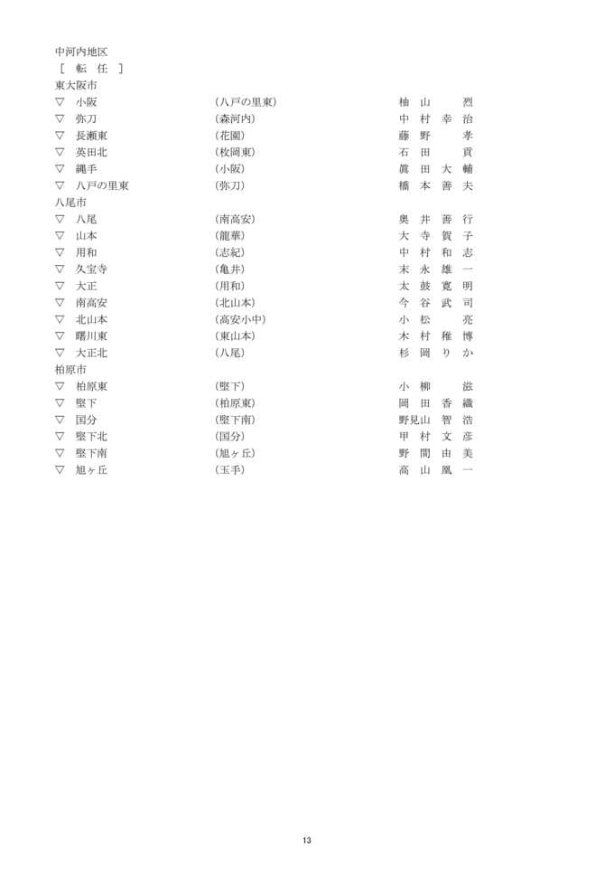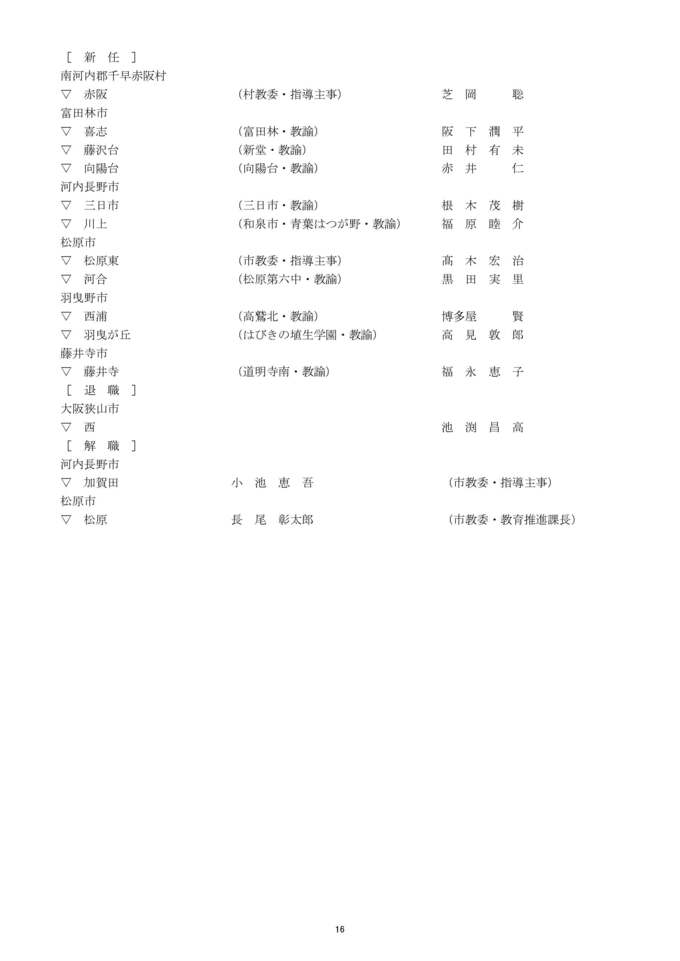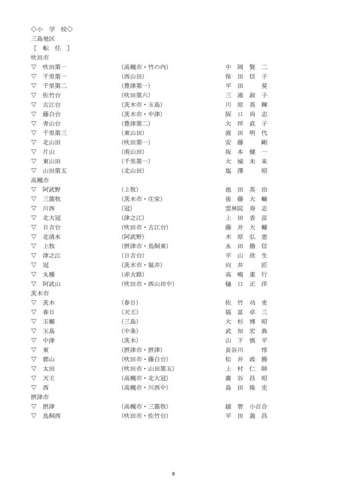 大阪府教職員人事異動2023「あの校長先生・教頭先生はどこへ?」小学校・中学校・府立高校など【全件掲載】 毎日放送 2023年4月2日(日) 12:06 国内 大阪府教育庁は4月1日付の公立学校教職員の人事異動を発表しました。異動は4月1日付です。 今回の異動対象の人数は8150人で、学校別では小学校で3100人、中学校で1942人、府立高校で2081人などとなっています。 また、校長や教頭など管理職に新たに女性が103人登用されたということです。また、在職者数は去年度と比べて、6人増加して、478人になったということです。 ▼中学校 ▼府立高校 ▼義務教育学校 ▼特別支援学校 ▼あの校長先生・教頭先生はどこへ?【小学校】 【校長】 小学校校長の人事異動 小学校校長の人事異動 小学校校長の人事異動 【教頭】