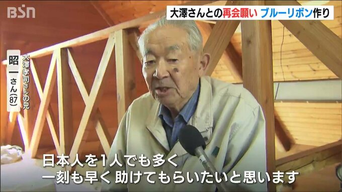 北朝鮮に拉致された可能性を排除できない特定失踪者・大澤孝司さんの兄・昭一さん(87歳)らが、1日も早い再会を願い、ブルーリボンを作りました。