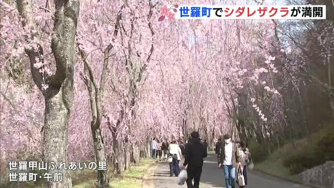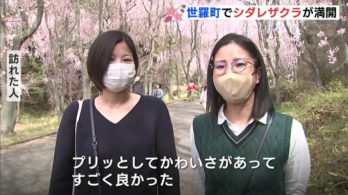 世羅甲山ふれあいの里では、新型コロナの影響で来園者数が落ち込んでいましたが、今年はまつり期間中、コロナ禍以前の2万人の人出を期待しているということです。訪れた人たちは暖かい日差しを浴びながら、サクラの花が重なってできたピンクのトンネルをゆっくりと歩いていました。