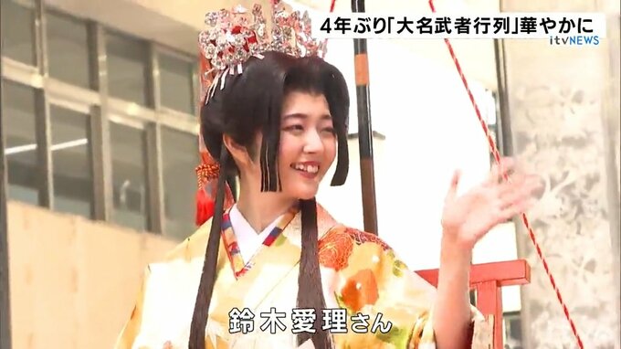 4年ぶりに開催されている「松山春まつり」。2日目のきょう2日は、「大名武者行列」が行われ、華やかな衣装の姫が豪華絢爛な時代絵巻を演じました。愛媛県松山市の中心部で1日から4年ぶりに開かれている「…