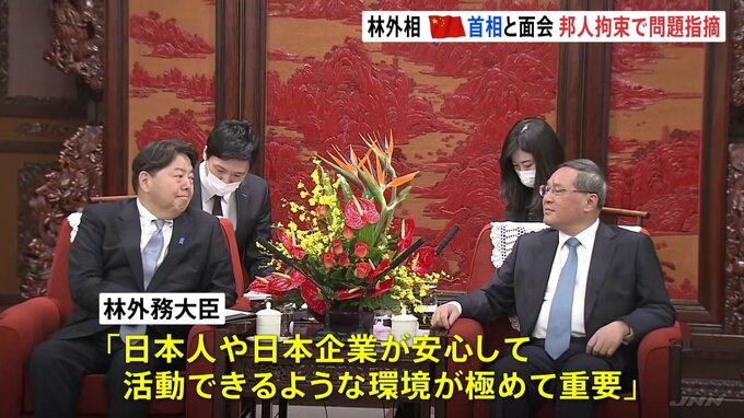 中国を訪問中の林外務大臣は李強首相と面会し、日本人男性が拘束されたことを念頭に「日本人が安心して活動できるような環境が極めて重要」と指摘しました。林外務大臣「日中関係は重要な局面にあると思います」中…