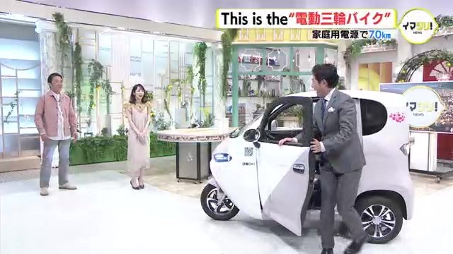 「天井には太陽光パネルをつけておりまして、これで充電もできる。走りながら充電することができますし。」