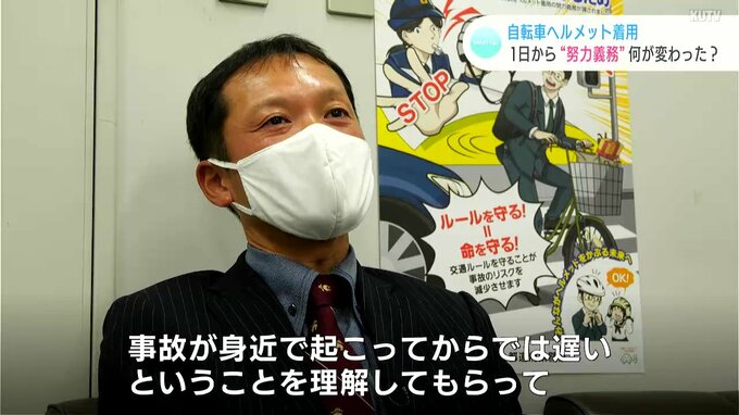 4月1日の法改正で自転車に乗る際のヘルメットの着用がすべての利用者に対して「努力義務」となりました。努力義務で何が変わったのか、そもそも、努力義務って?高知県警に取材しました。