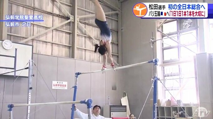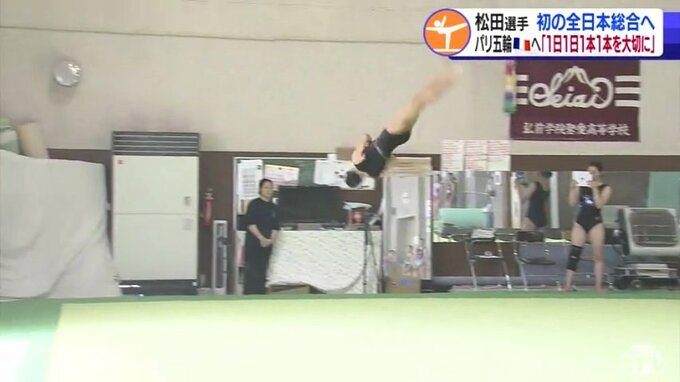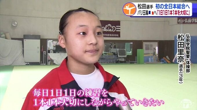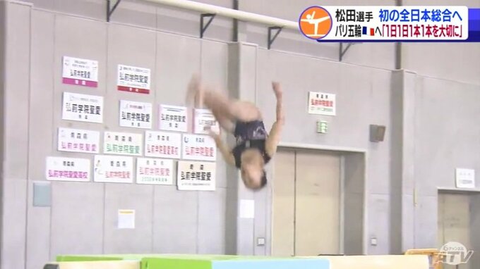 松田選手は4月20日に開幕する全日本個人総合に向け調整を進めています。日本代表の選考にもつながるこの大会への出場は青森県内の高校生の女子としては初めてです。
