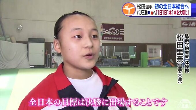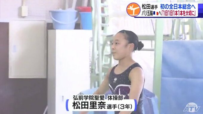 3月、体操の全国高校選抜の種目別「ゆか」で日本一になった弘前学院聖愛高校体操部の3年・松田里奈(まつだ・りな)選手。高校ラストイヤー、日本代表を目指して青森県勢高校女子では初となる全日本個人総合に挑みます。