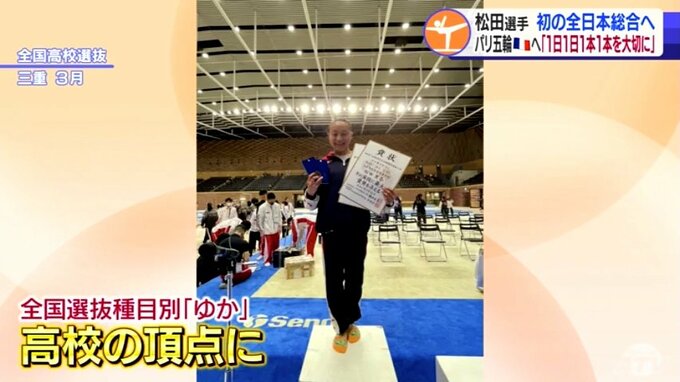 去年6月には種目別の全日本にも初出場。3月の全国高校選抜では得意のゆかで頂点に立ちました。