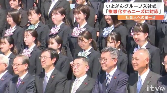 いよぎんホールディングスの本社ではグループ6社の新入社員、合わせて153人が入社式に臨みました。式では三好賢治社長が去年10月に持ち株会社体制となる「いよぎんホールディングス」が発足したことに触…