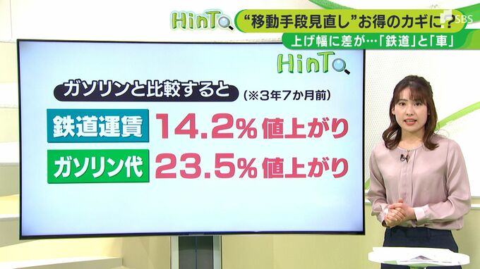 鉄道運賃とガソリンと比較をしてみると、静岡鉄道が前回値上げをした3年7か月前と比べ、鉄道運賃は14.2%上がっているのに対し、ガソリン代は23.5%上がっています。移動の際は公共交通機関をうまく使うという意識が生活コストを少し下げる「ヒント」になりそうです。