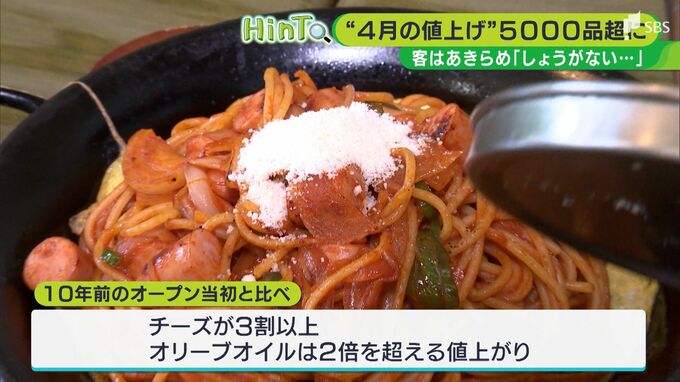 10年前のオープン当初と比べ、洋食に欠かせないチーズが3割以上、オリーブオイルは2倍を超える値上がりに。今後も食材は値上がりが予想され、経営体力をむしばんでいます。