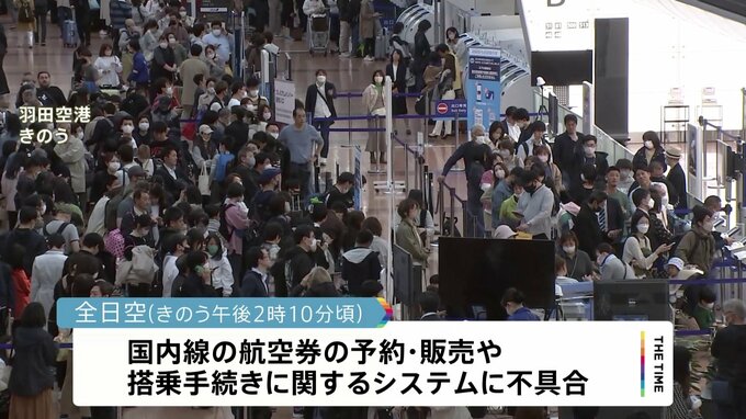 きのう、全日空の国内線の搭乗手続きなどを行うシステムに不具合が起き、羽田を発着する便を中心に55便が欠航しました。全日空によりますと、きのう午後2時10分ごろ、国内線の航空券の予約・販売や搭乗手続きに関…