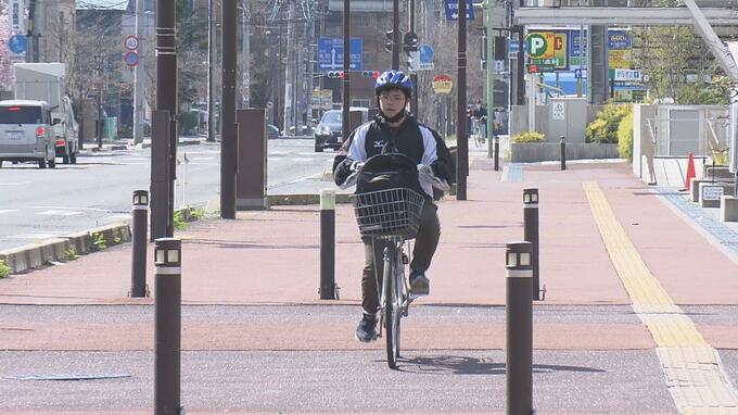 高橋広季アナウンサー「午前8時ごろから1時間半ほど取材をしているのですが、自転車で走る10人に1人の割合でヘルメットを着用している印象を受けます」