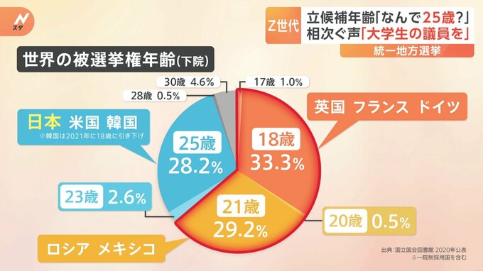 全国で行われている統一地方選挙で、政治のアップデートが課題になっています。選挙に立候補できる年齢の引き下げを求める声が若い世代で相次いでいます。東京・渋谷のSHIBUYA109。きのう、高校生から大学生まで30…