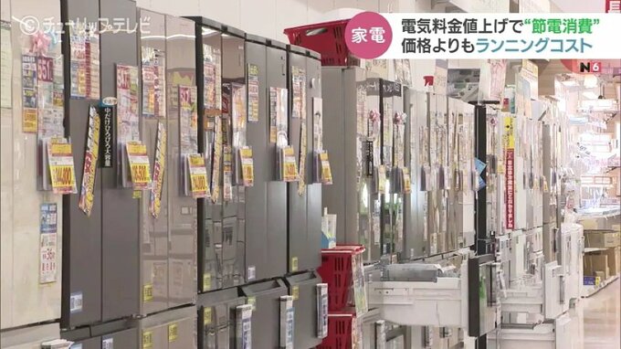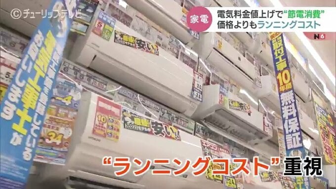 店によりますと近年は商品そのものの「価格」より電気代や維持費など「ランニングコスト」を重視する傾向にありこの1年で節電を目的に家電を買い換える人がこれまでの1.2倍から1.5倍に増えているといいます。